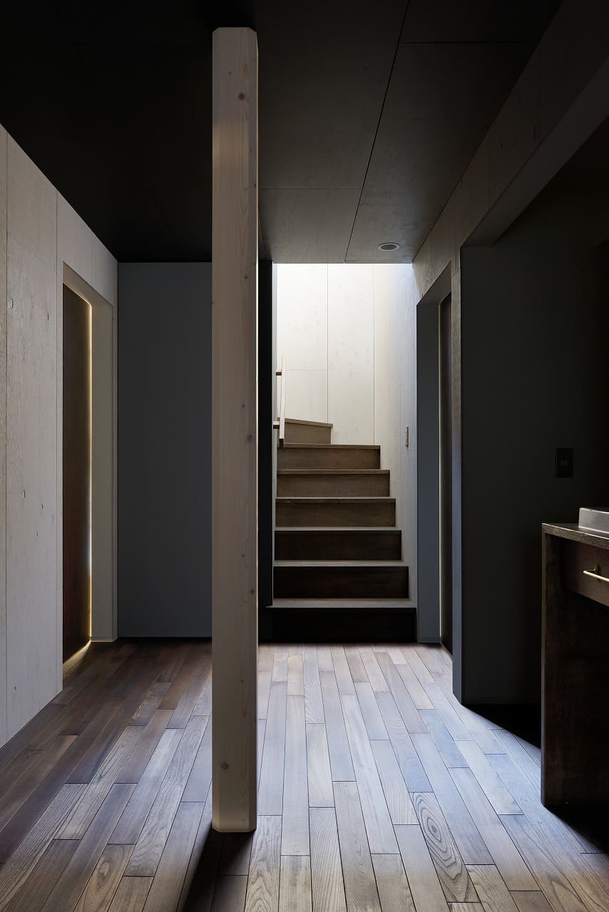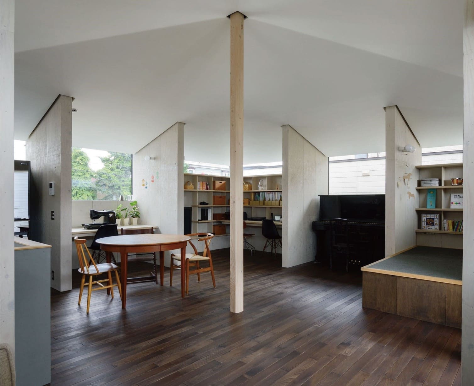 2016年 札幌市中央区 29坪・96㎡ 撮影 佐藤文昭 朝、東の空に浮かんだ光が時間をかけてゆっくりと西の山へと辿りつく。日々繰り返される光の豊かな移ろいを、室内にいながらも感じられる家。この家は、読書という共通の趣味を持ち、自宅で共に過ごす時間を大切する家族のための住まいである。